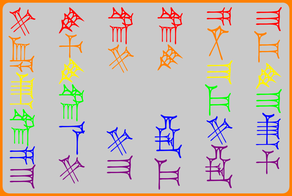 If that’s not artsy-fartsy enough map standard alphanumeric characters to say, Hittite Unicode,3 throw in some gay colors, and Voila you get logo-friendly graphics like: