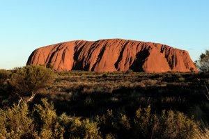 We walked around the base of Uluru until we reached the car park where people once climbed the rock. Climbing is now banned. The Anangu never approved of climbing and now that they are administering the rock, they’ve banned it. I approve of the ban, not because of any sky fairy sacred rock nonsense, but simply because it cuts down on the number of yahoos. Without the ban, the parking lot would have been filled with four-wheel drive trucks loaded with noisy tourists decked out in gay Spiderman climbing suits. Instead, the lot was empty and we were the only people beside this world wonder. As I have said over and over, I prefer my national parks with fewer people.