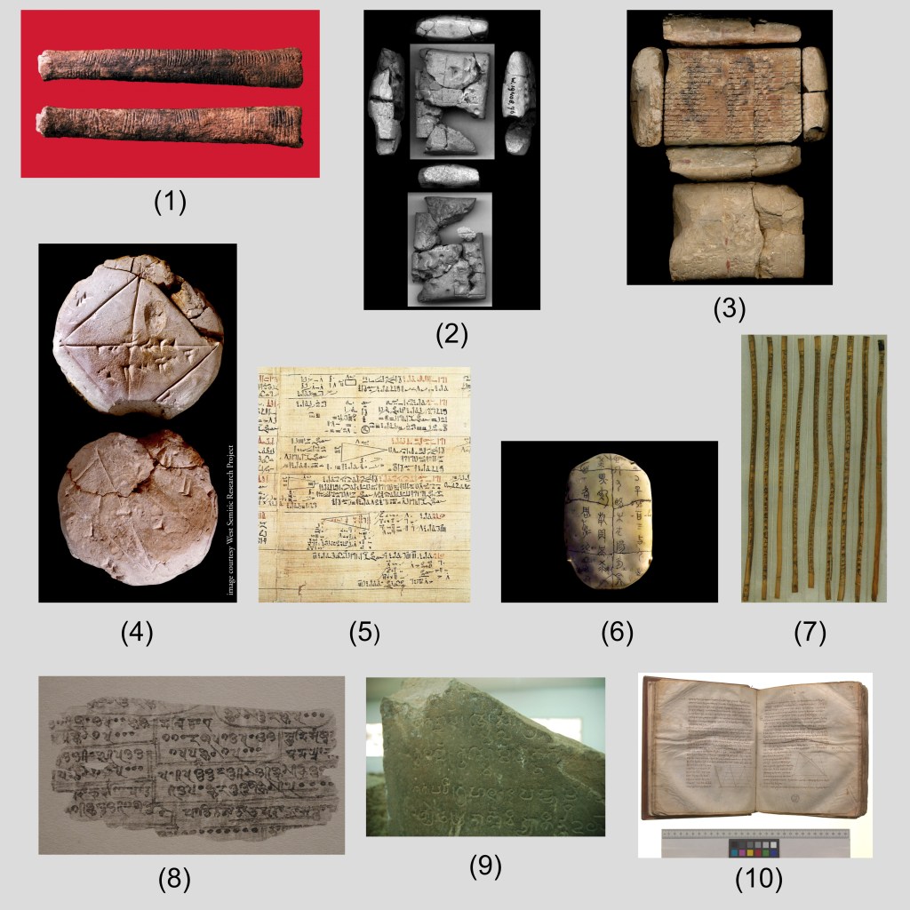 When I started tracking down references to ancient mathematical artifacts, I quickly discovered that everyone keeps referring to the same short list of objects. Instead of going down a rabbit hole, you find yourself wandering in a circular maze littered with objects like the Ishango Bone, Plimpton 322, the Rhind Papyrus, Yale YBC 7289, the Suàn shù shū, oracle bones, the Bakhshali manuscript, W 19408,76, the Khmer Zero, and a few surviving medieval versions of Euclid’s Elements. Surely the dense convoluted tomes going on about the history of mathematics cannot — when traced back to source materials — depend on such a meager collection: a collection so small it would fit in the bed of your pickup with enough space left over for your dog!