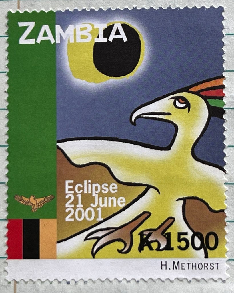 The moon steadily advanced over the sun’s disk for the next hour and twenty minutes. The quality of the light slowly changed. A soft white evening light filled the soccer field as most of the sun’s disk disappeared. People held up their interlaced fingers and cast crescents on the ground. Some people poked holes in white cardboard sheets and projected crescent letters on sheets and t-shirts. ZAMBIA 2001 was a favorite.